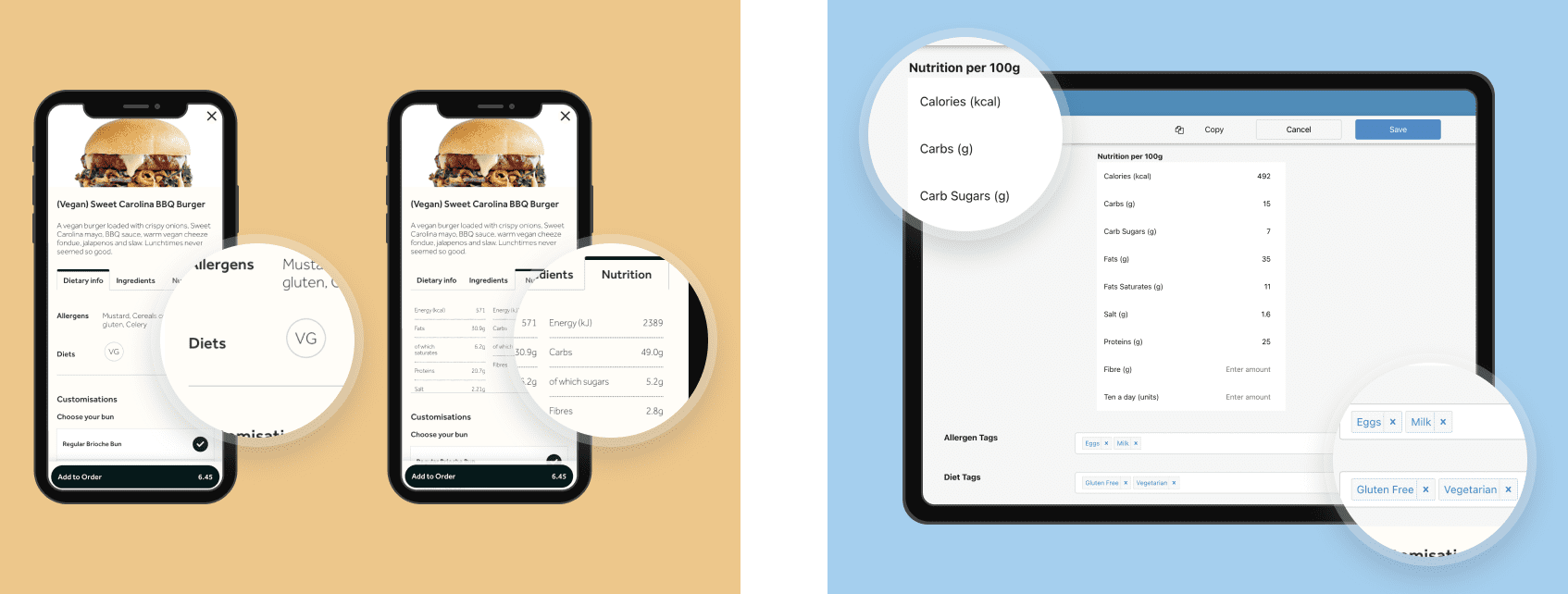 • For customised meals, automatically update allergen tags with any modifications or additions made by the customer.