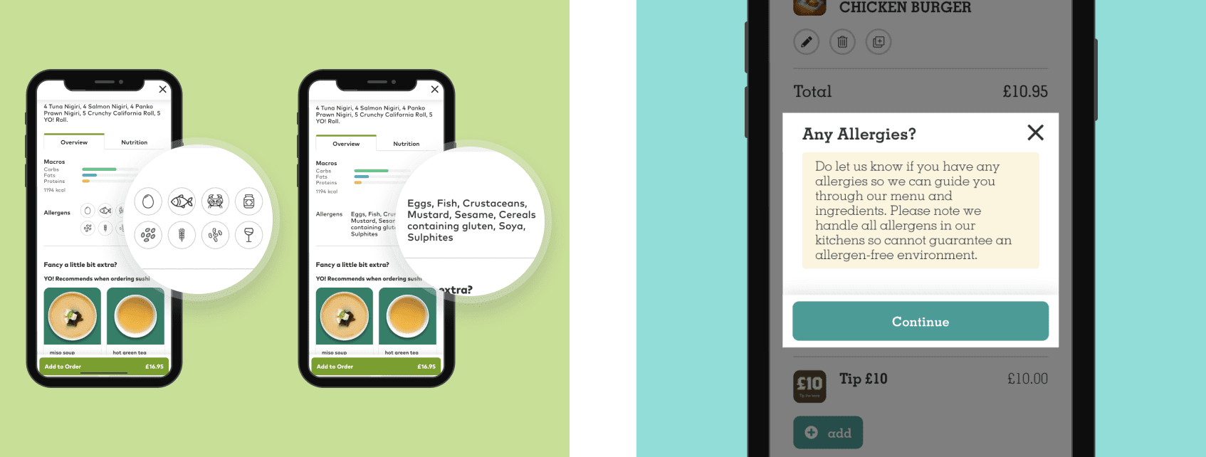 • Have a pop-up reminding customers with serious food allergies to get in touch or inform a member of staff.