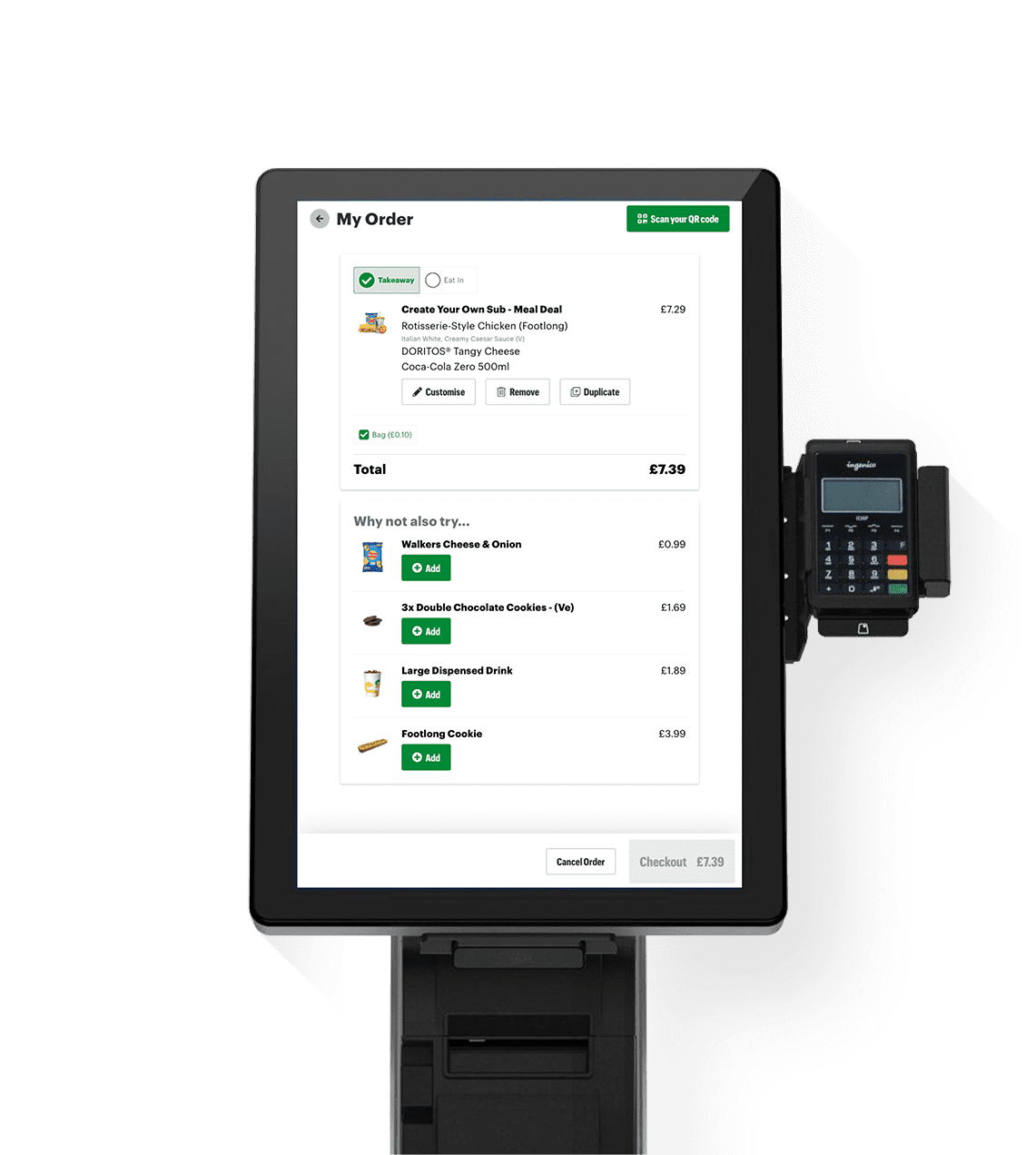 Boost ATV, take more orders, and reduce labour costs with a fully branded self-service kiosk, freeing up your team to deliver the perfect experience – every time.